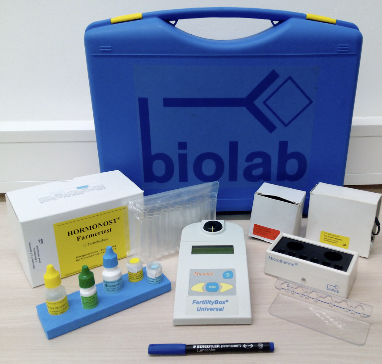 Quantitative Bestimmung von Milch-Progesteron. Ergebnisanzeige in ng/ml und bis zu 6 Proben gleichzeitig analysierbar.
